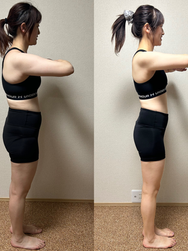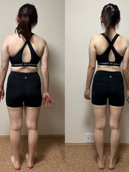 学生時代は運動部で毎日練習をしていたA様。基本的な筋力はありましたので、全身運動を沢山メニューに組み込み、キックボクシングエクササイズで脂肪燃焼を沢山しました。猫背、巻き肩の姿勢が強かったので、背中のトレーニングもしっかり組み込んだので姿勢にもかなり変化を出せたと思います。